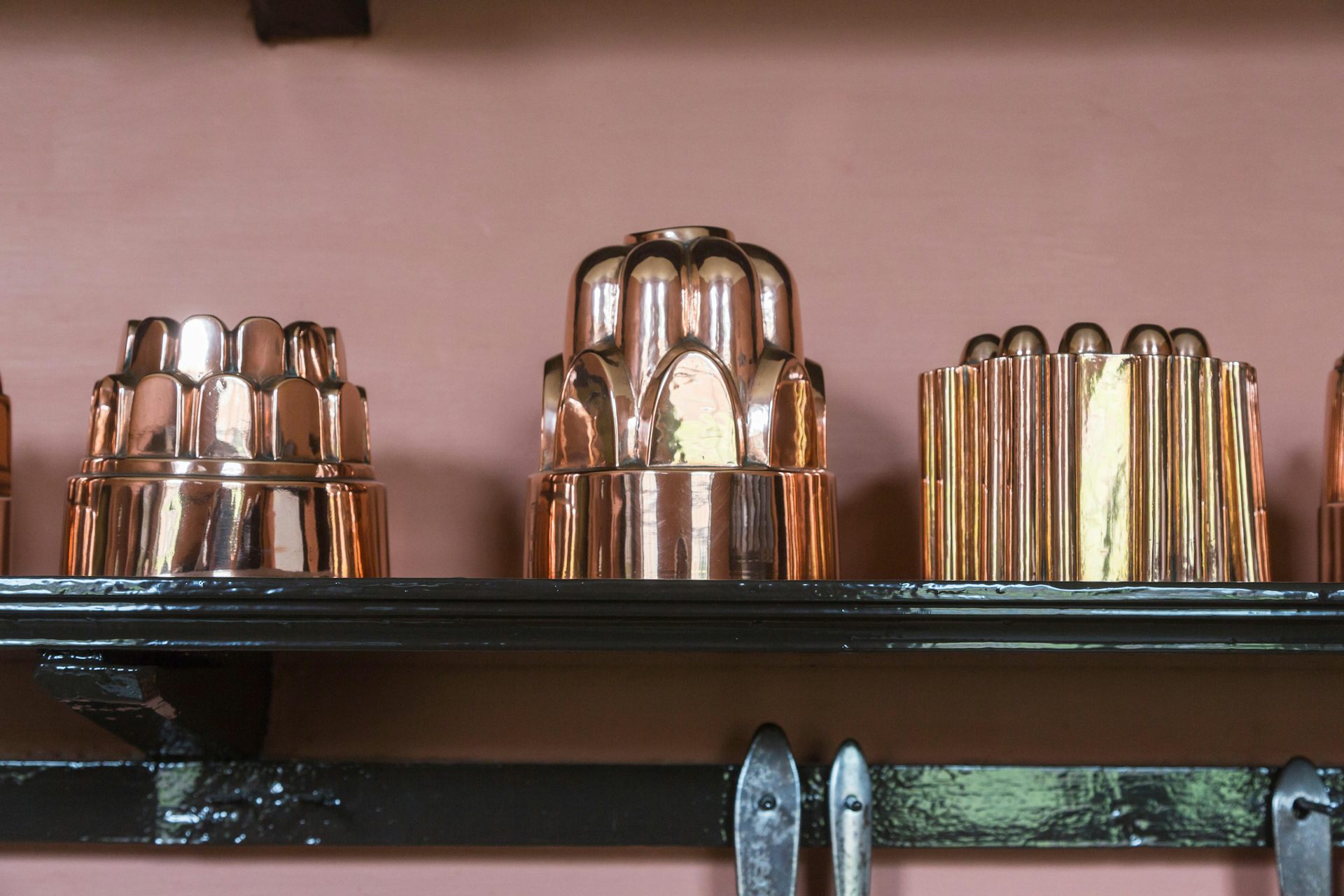 Jelly moulds on a rack.